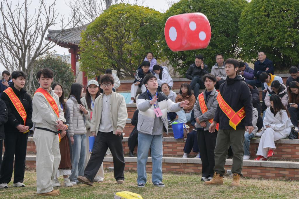 活动现场,巨型喷绘棋盘格外吸睛,红黄绿三色分区设置问答格、任务格、幸运格,玩法新颖、互动性强。参与者两人一组组队闯关,通过掷骰子、完成任务、作答水知识题目等环节开启探险之旅。问答题目涵盖世界水日常识、烟台本地水利工程、我国水资源分布、节水法规等多领域内容,贴合生活、兼具专业性;任务格趣味互动、幸运格惊喜加成,让同学们在奔跑协作中闯关答题,现场掌声、欢笑声不断。相较于传统科普宣讲,这种沉浸式游戏模式打破枯燥学习壁垒,让水知识潜移默化入脑入心。