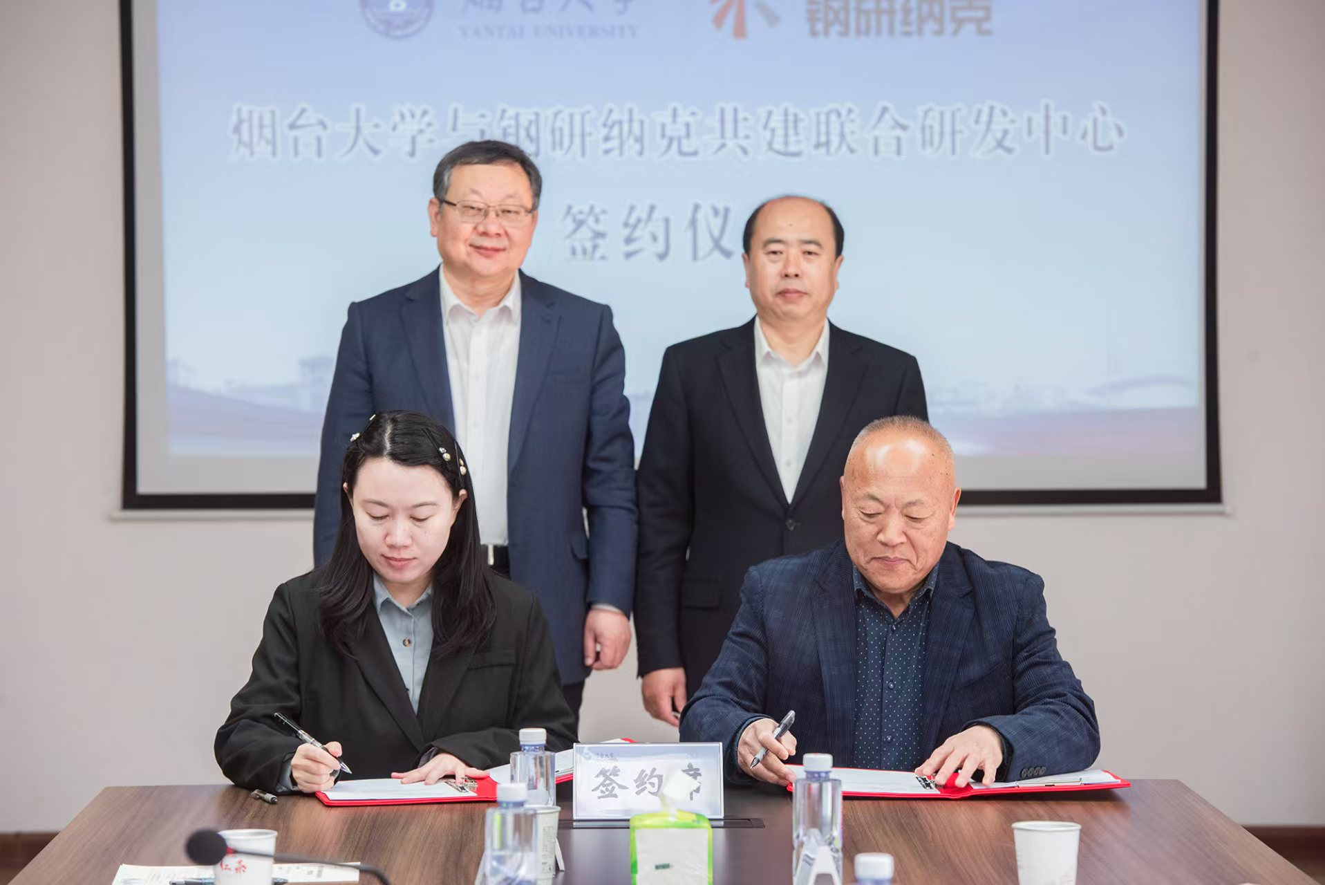 3月26日上午,烟台大学与中国钢研科技集团钢研纳克检测技术股份有限公司共建联合研发中心签约仪式在校举行。钢研纳克检测技术股份有限公司党委书记、董事长杨植岗,检测事业部副总经理钟振前,科技质量部副经理张小帅,钢研检验认证(北京)有限公司副总经理张海龙,青岛钢研纳克检测防护技术有限公司主任丁国清;烟台大学党委副书记、校长郝曙光,党委常委、副校长初磊,加拿大工程院院士、烟台大学栾本利教授,人事处、科技处、环境与材料工程学院负责人出席活动,共同见证这一深化产学研合作、共促创新发展的重要时刻。签约仪式由初磊主持。